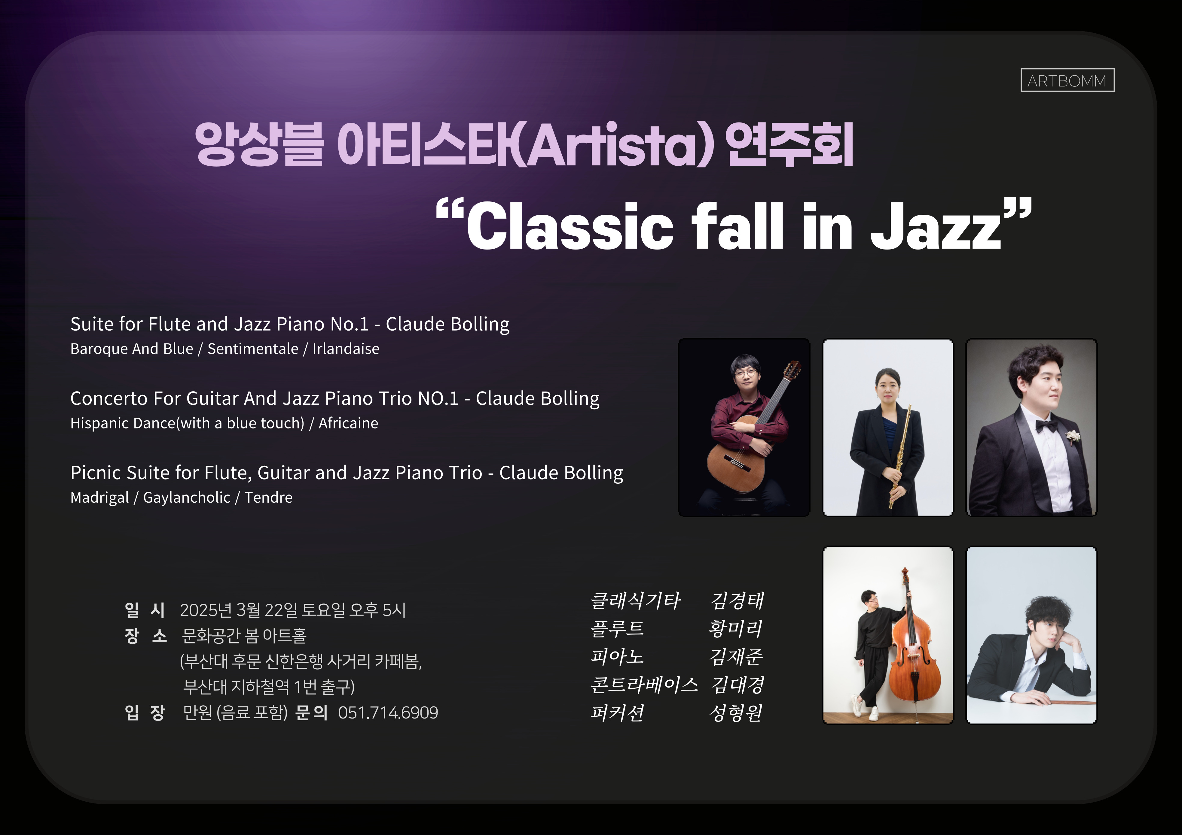 기타 앙상블 아티스타(Artista) 연주회 “Classic fall in Jazz”