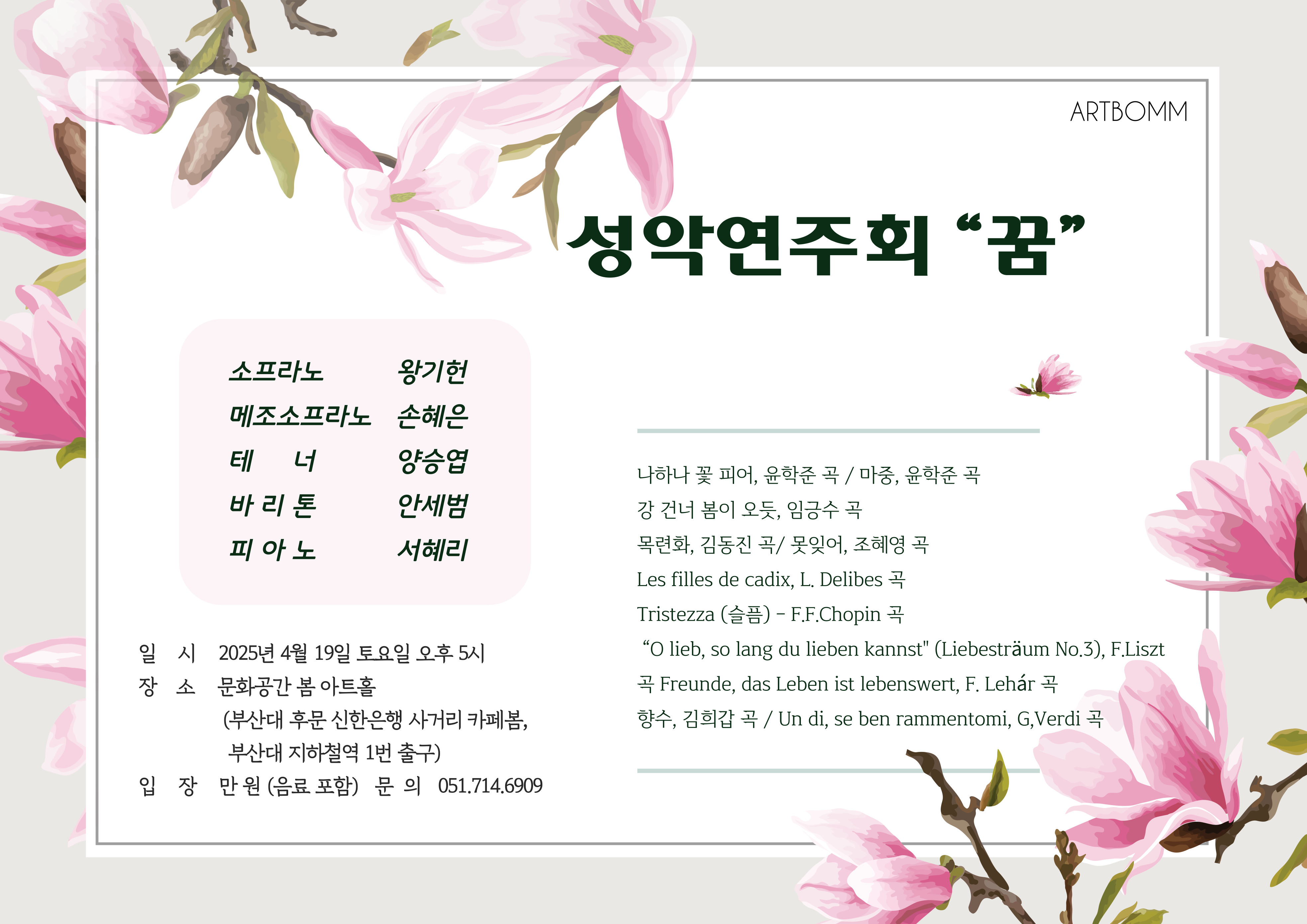 소프라노 왕기헌, 메조소프라노 손혜은, 테너 양승엽, 바리톤 안세범