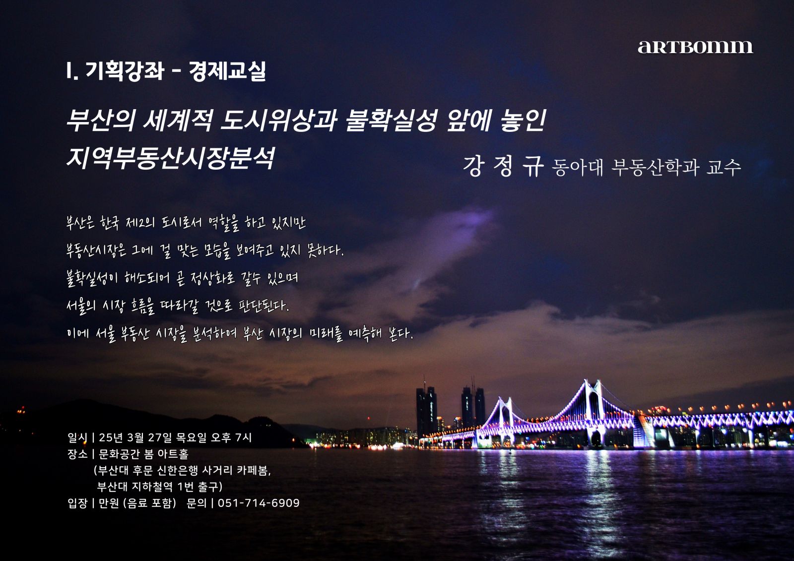 1. 기획강좌 – 경제교실 /부산의 세계적 도시위상과 불확실성 앞에 놓인 지역부동산시장분석